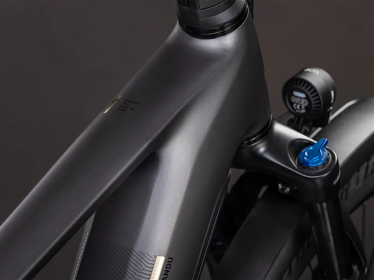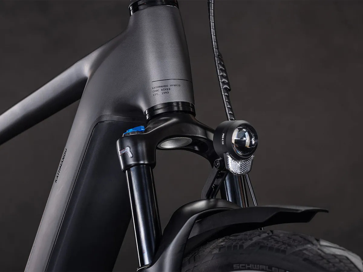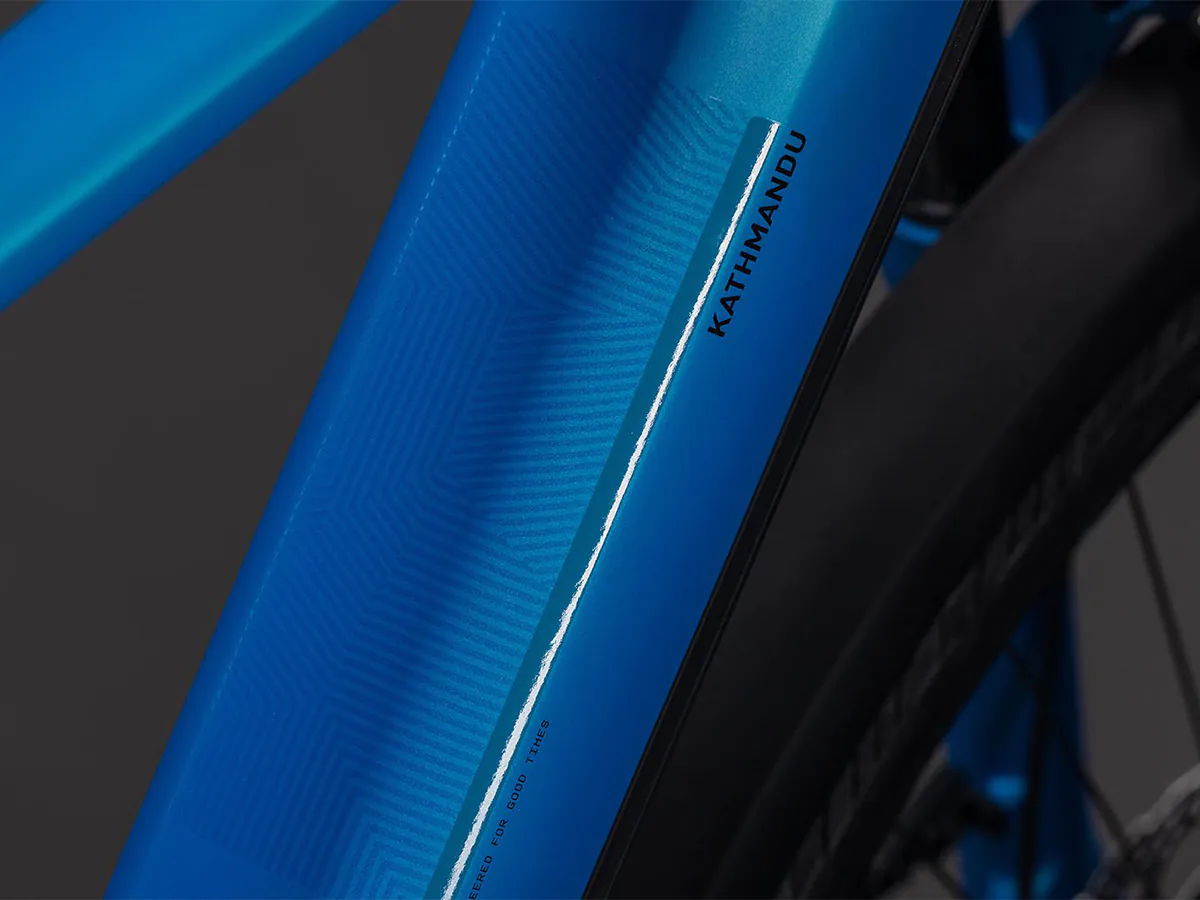 Het ontwerp van de CUBE Kathmandu Hybrid is klassiek elegant, maar zit desondanks vol slimme innovaties en doordachte details. De fraai in het frame geïntegreerde Bosch CX-motor en 800 wattuur PowerTube-accu vormen de basis. Weggewerkte kabels dragen bij aan de strakke lijnen van het frame. Onze befaamde Efficient Comfort-geometrie is ontwikkeld rondom een voorvork met 100 millimeter veerweg. Dat betekent dat je zelfs op ruwe wegen kunt rekenen op maximale controle. Praktisch: de UDH-achterpat is niet alleen degelijk, maar ook toekomstbestendig. En dankzij de geïntegreerde IC 3.0-bagagedrager kun je alles meenemen wat je voor je avonturen nodig hebt.