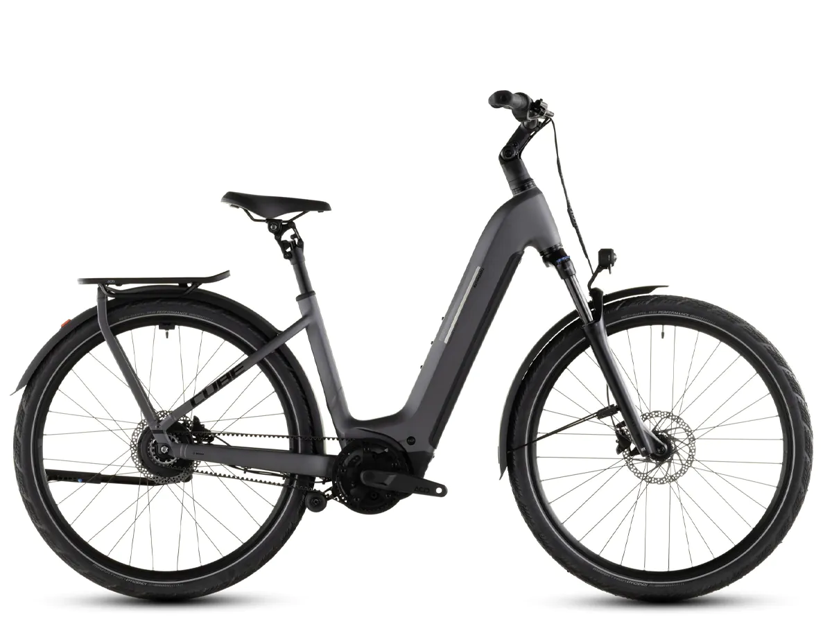 Onder de strakke, elegante lijnen van de CUBE Kathmandu Hybrid Comfort Pro 800 gaat een flink lading slimme technologie schuil. Zo is de Enviolo-naafversnelling traploos, wat betekent dat je eenvoudig draait totdat je de gewenste versnelling hebt – er is niet meer zoiets als een ‘verkeerde’ versnelling. Daarnaast is de fiets uitgerust met riemaandrijving. Nooit meer je ketting smeren, nooit meer gedoe. De Bosch CX-motor levert tot 90 newtonmeter trapondersteuning, waardoor elke route – zelfs die met heuvels – moeiteloos te rijden is. Met de 800 wattuur van de geïntegreerde PowerTube-accu hoef je je geen zorgen te maken over de actieradius. De krachtige hydraulische Shimano-schijfremmen doen hun werk onder alle weersomstandigheden en de luchtgeveerde Suntour-voorvork, verstelbare stuurpen en geveerde zadelpen bieden het nodige comfort. Gecombineerd met de Integrated Carrier 3.0 en een volledig pakket accessoires ben je klaar voor elk avontuur.