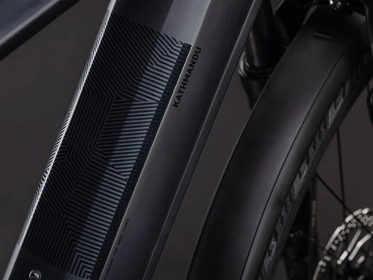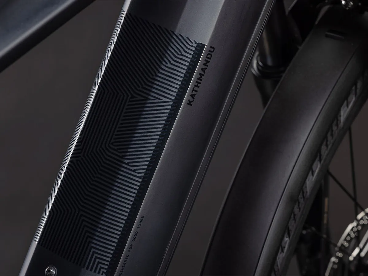 Het ontwerp van de CUBE Kathmandu Hybrid is klassiek elegant, maar zit desondanks vol slimme innovaties en doordachte details. De fraai in het frame geïntegreerde Bosch CX-motor en 800 wattuur PowerTube-accu vormen de basis. Weggewerkte kabels dragen bij aan de strakke lijnen van het frame. Onze befaamde Efficient Comfort-geometrie is ontwikkeld rondom een voorvork met 100 millimeter veerweg. Dat betekent dat je zelfs op ruwe wegen kunt rekenen op maximale controle. Praktisch: de UDH-achterpat is niet alleen degelijk, maar ook toekomstbestendig. En dankzij de geïntegreerde IC 3.0-bagagedrager kun je alles meenemen wat je voor je avonturen nodig hebt.