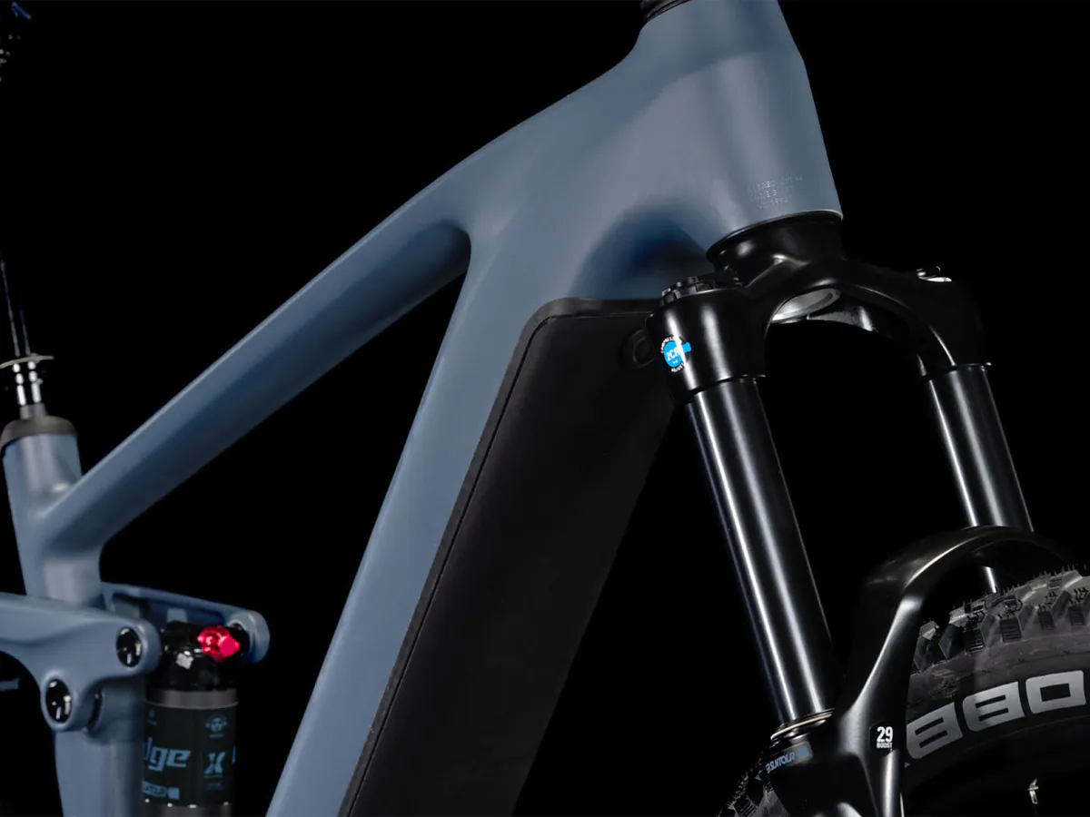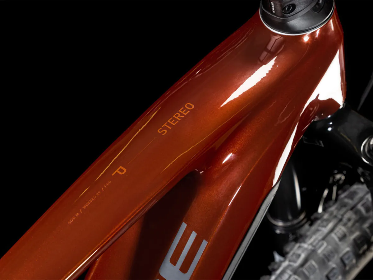 Met de nieuwe Bosch CX-Motor is het design van de Cube Stereo ook een stuk strakker geworden. De motor loopt bijna onzichtbaar door in het frame. Hiermee en met de dubbele vering van het zadel naar de trappers zit het zwaartepunt nog centraler in de e-bike. De lasnaden van het frame zijn nagenoeg onzichtbaar en het frame is strak en stijf. Met deze mountainbike kun je zeer precies aangeven welk pad jij wil volgen.